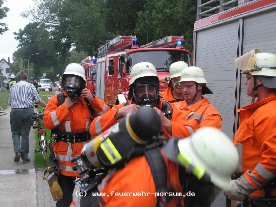 Dort wurden zudem drei Personen vermisst. Der Fachzug Wasserförderung wurde alarmiert um die Feuerwehr Otterstedt zu unterstützen und aus dem Einsatz herauszulösen. Zusätzlich mussten die drei Personen aus dem Gefahrenbereich gerettet sowie eine Wasserversorgung aufgebaut werden. Nachdem die Wasserversorgung stand und die ersten zwei Personen schnell gefunden werden konnten, musste zur Rettung der dritten Person die Drehleiter des Fachzuges Technische Hilfeleistung unterstützen.