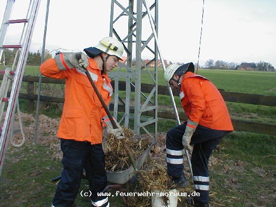 Bereits zum zweiten mal in diesem Jahr konnten wir den Intscheder Kameraden bei deren Reinigung eines Storchennestes unterstützen. Mit unserer 3-teiligen Schiebeleiter konnten wir diese Arbeiten erheblich erleichtern. Nachdem das erste Nest bereits vor einigen Wochen gesäubert wurde, welches zur Zeit bereits bewohnt ist, war nun das zweite Nest an der Reihe.