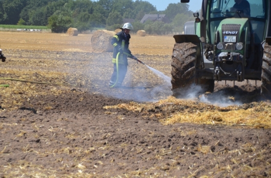 Auch heute bekam die Feuerwehr Hilfe von mehreren Landwirten mit ihren Traktoren. Die verbrannte Erde konnte so wieder schnell untergegrubbert werden, um ein Wiederaufflammen möglicher Glutnester zu verhindern.