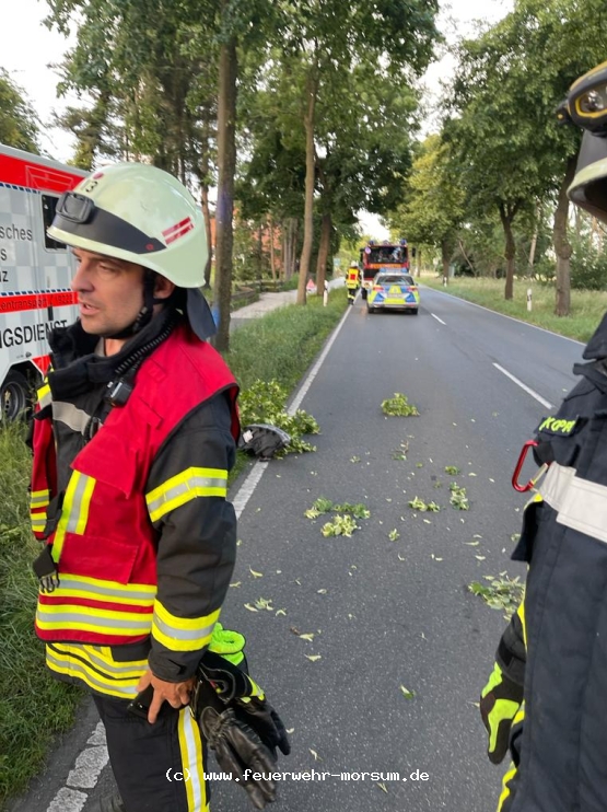 | Kräfte am Einsatzort: | TLF 16/25-Morsum, TSF-W-Morsum, Gemeindebrandmeister, RTW, Straßenmeisterei, Polizei.