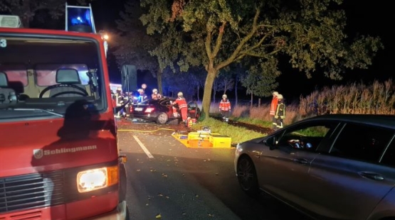 | Wenn morgens alle schlafen, sind die einen oder anderen am Arbeiten. Heute Morgen auch wir. Um 4:21 Uhr wurden wir von den Sirenen geweckt. In der Alarmmeldung stand „VU (Verkehrsunfall) Person klemmt“. Für uns ist die Kennung „Person klemmt“ ein Zeichen für höchster Eile. Als wir eingetroffen waren, bemühte sich der Rettungsdienst über den Beifahrerraum um den Patienten, dieser war ansprechbar. Wir stellten den Brandschutz sicher und sperrten die Einsatzstelle gegen Verkehr aus Morsum kommend. Zu dem leuchteten wir mit unserem Fahrzeuglichtmast die Einsatzstell aus. Für die technische Rettung waren die Kameraden aus Thedinghausen, die fast gleichzeitig mit uns eingetroffen sind, und die Kameraden aus Blender zuständig. Außerdem sperrten die Kameraden aus Thedinghausen den Verkehr aus Lunsen kommend. Nach dem der Patient von den Thedinghäuser an den Rettungsdienst übergeben wurden ist, konnten wir die ersten Aufräumarbeiten durchführen. Nach Übergabe der Einsatzstelle an die Polizei, rückten wir gegen 5.30 Uhr wieder ein. Für die Rettungsmaßnahmen und Unfallaufnahme musste die Einsatzstelle komplett gesperrt werden.