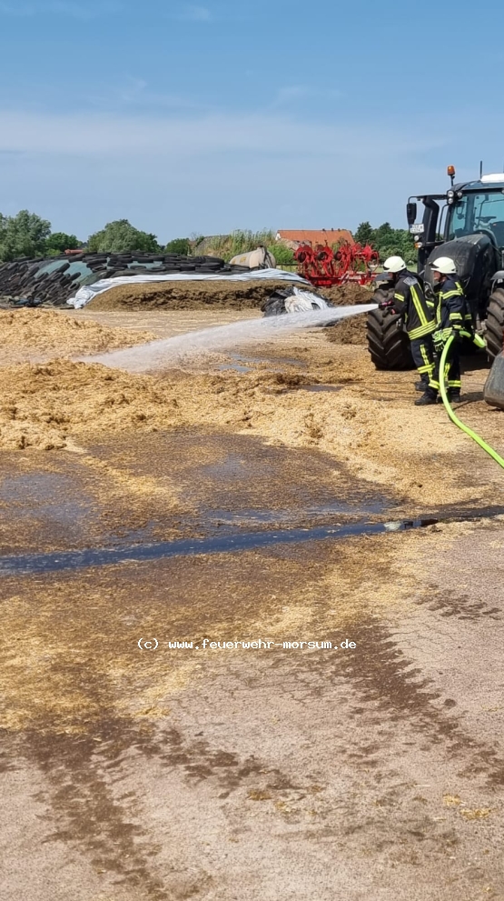 | Schreckmoment am Samstagmittag in Intschede: Ein Futterlager eines landwirtschaftlichen Betriebes war aus noch unbekannter Ursache in Brand geraten und drohte angefacht vom Wind auf Stallungen und eine Maschinenhalle überzugreifen. Noch vor Eintreffen der Feuerwehr unternahmen die Eigentümer erste Löschversuche und konnten so eine größere Brandausbreitung frühzeitig verhindern.