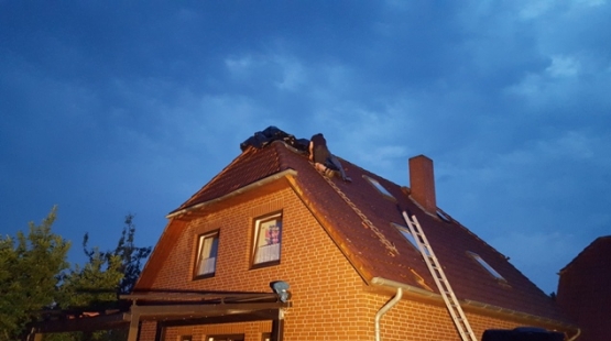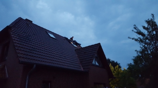 Heute wurden wir zu einem Einsatz nach Wulmstorf gerufen. Im Mühlenweg ist ein „kalter“ Blitz in ein Dach eingeschlagen. 3 Kameraden unter Atemschutz untersuchten das Haus und den Bereich, in dem der Blitz eingeschlagen ist, mit einer Wärmebildkamera. Es konnte lediglich eine Wärme von 32 Grad festgestellt werden. Zur Sicherheit wurde der Energieversorger hinzugezogen, der die Hauptsicherung vom Gebäude zog. Ein Mitglied der Wulmstorfer Kameraden, der vom Beruf Dachdecker ist, hat dass Dach provisorisch abgedichtet. In der Zwischenzeit wurden die Kameraden aus Wulmstorf zu einer weiteren Einsatzstelle in der Alten Dorfstraße gerufen. Hier ist der Blitz in den Schornstein eingeschlagen. Mit dem ELW1 ist der Gemeindebrandmeister zu der 2. Einsatzstelle gefahren. Auch hier kamen die Wärmebildkamera und der Mitarbeiter des Energieversorgers in Einsatz.